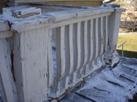 The pictures below shows the before and after shots of a porch restoration. Unfortunately, the railing was too weathered to save, and it was too short for safety at only 30" tall. The new wooden railing was reproduced exactly as the original, with the exception that it is now 36" tall.